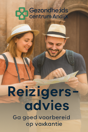 Een verre reis begint met een goede voorbereiding. Bij Gezondheidscentrum Andijk geven we persoonlijk reizigersadvies, afgestemd op jouw bestemming, gezondheid en reisduur. Denk aan vaccinaties, malariaprofylaxe en tips voor veilig reizen. Zo vertrek je met een gerust hart en kom je gezond weer thuis. Doe dit tijdig en ruim voordat u vertrekt. U kunt het reizigersformulier HIER downloaden en invullen. Het ingevulde formulier kunt u inleveren op de praktijk ter beoordeling zodat u een gedegen reizigersadvies kunt krijgen.